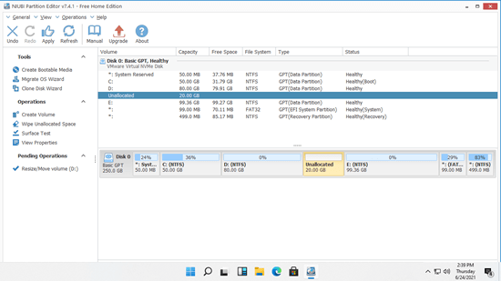 If you want to create more partitions in Windows 11 laptop/desktop/tablet, simply right click the unallocated space and select "Create Volume" in NIUBI. If you want to extend a partition by shrinking another volume in Windows 11/10/8/7, it is very easy, too.